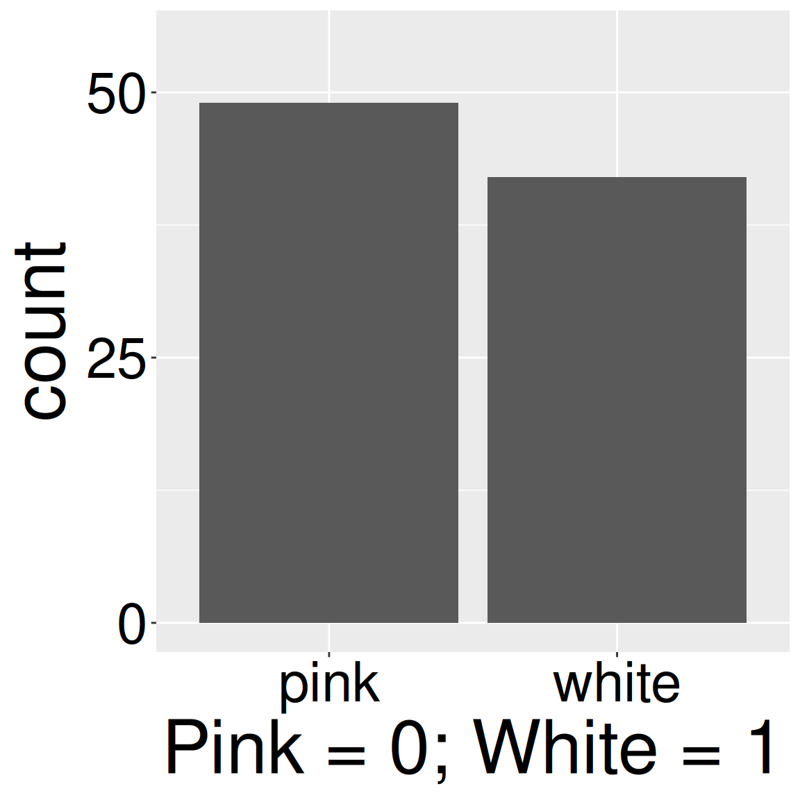 Figure 1: A bar plot showing the number of pink and white flowered plants, experimentally planted at location GC.