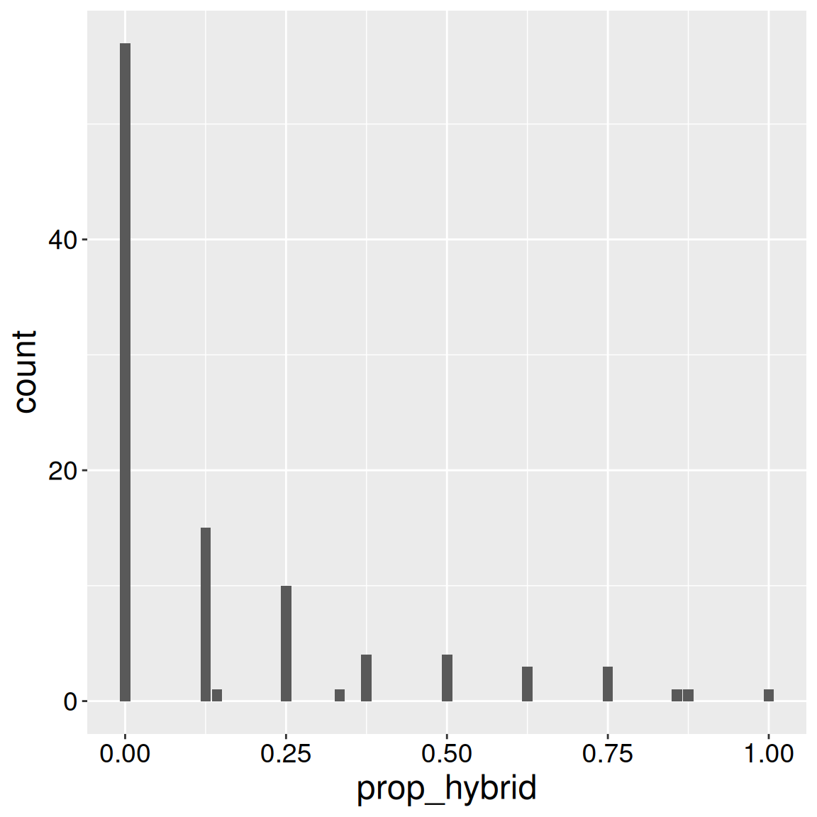 gc_rils |>ggplot(aes(x = prop_hybrid))+geom_bar()